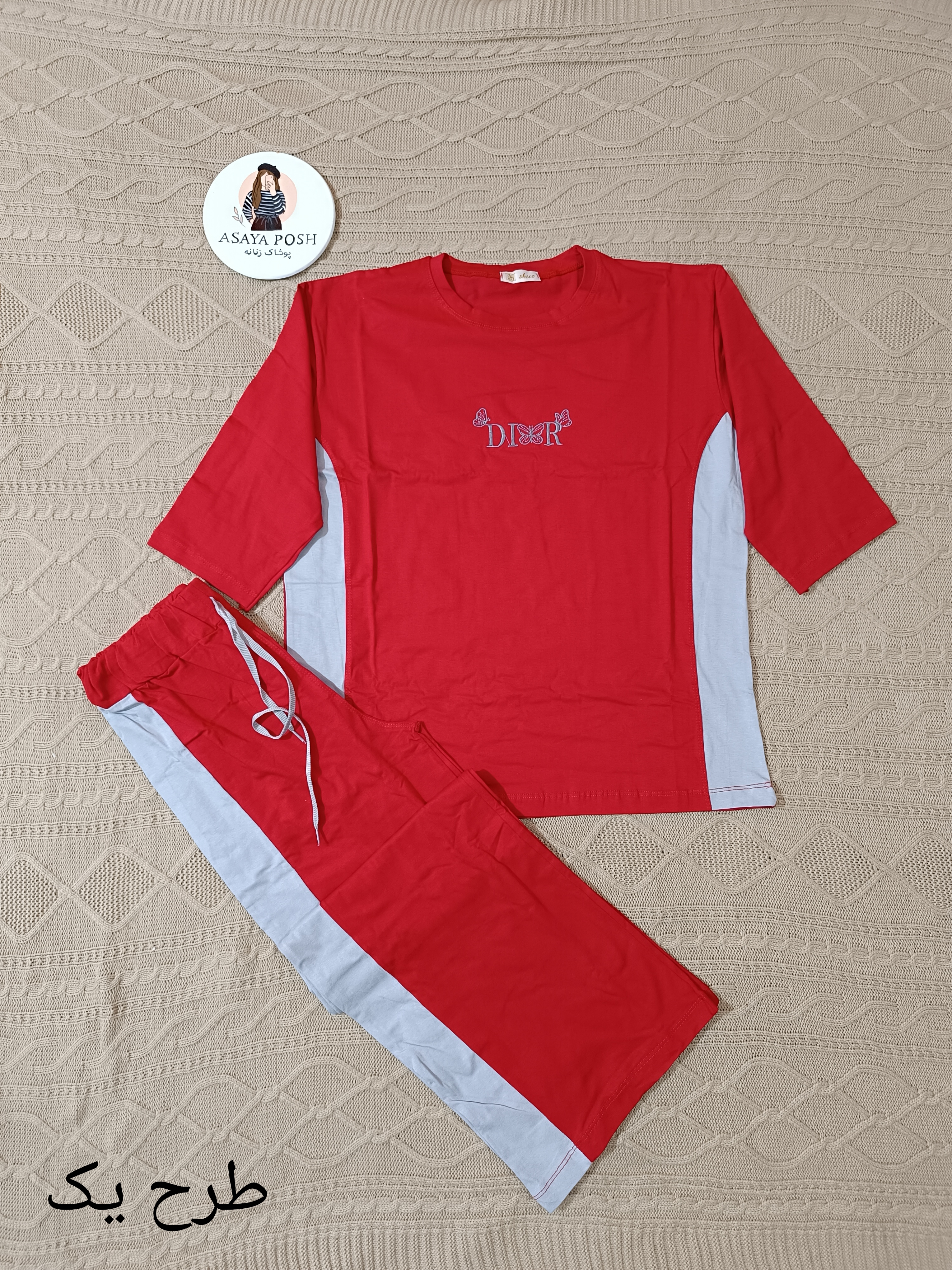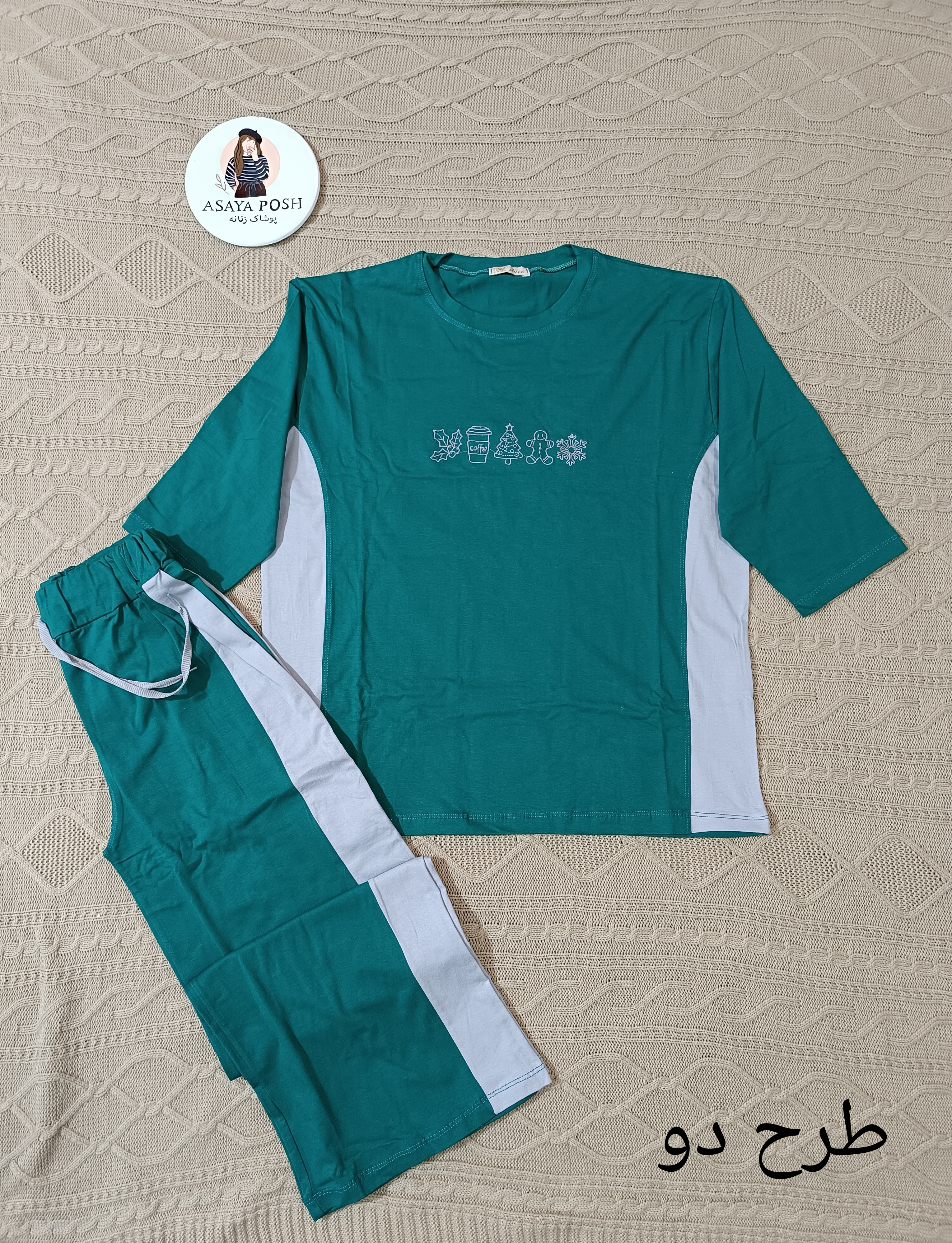 دستهبندی: ست راحتیجنس پارچه: نخ پنبه لاکرادارسایز: فری سایز تا 46 برای 48کمی جذبعرض سینه: 124قد تیشرت: 72